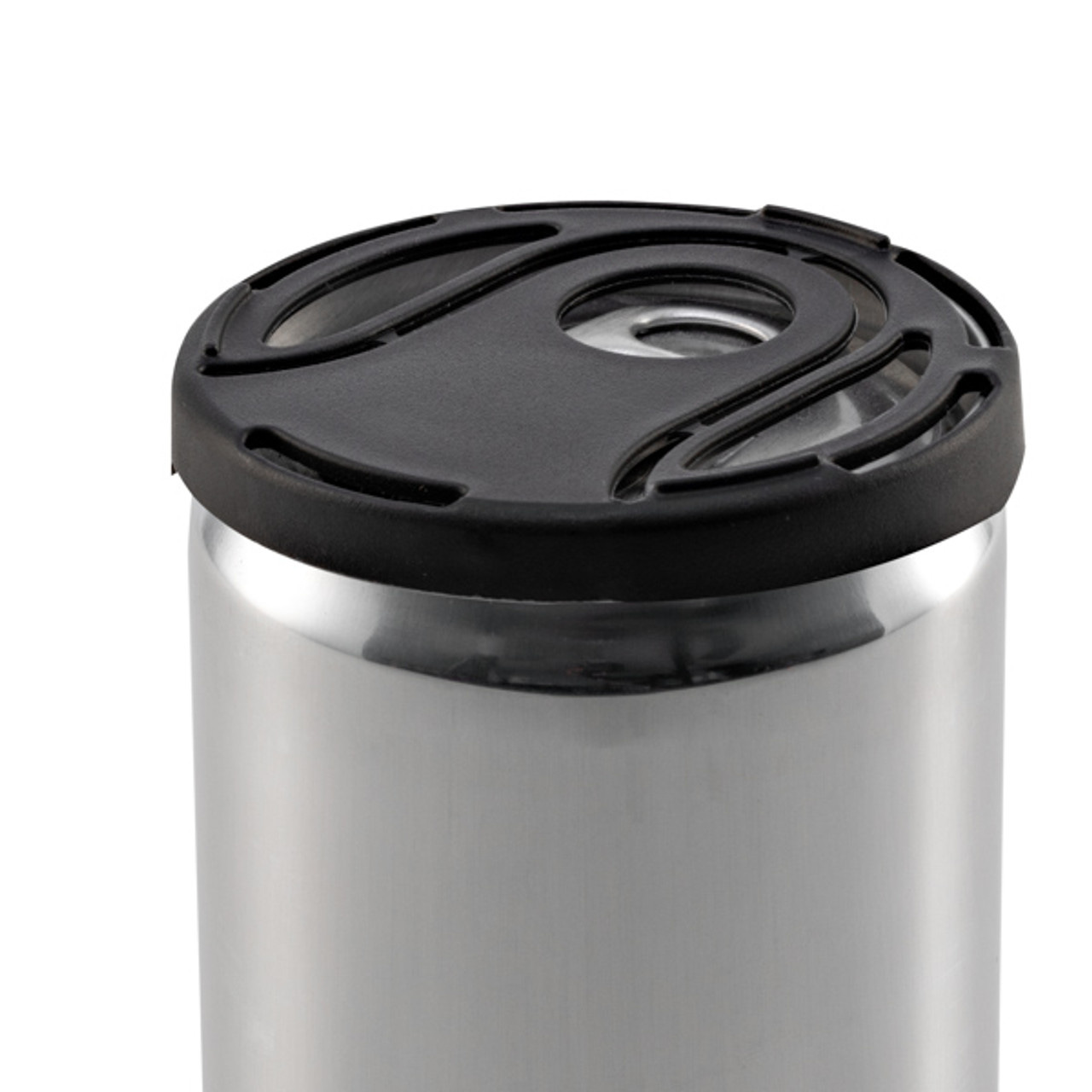 Can’t Tops - a somewhat impractical solution but effective, these fit snugly on top of a can when force is applied directly on top, and then need to be ripped open by slipping the finger underneath and pulling. There aren’t yet automated solutions. That’s I’ve seen.