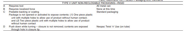 The other side of this argument stems from a specific ASTM standard, ASTM D3475-20. This is a paper entitled Standard Classification of Child-Resistant Packages. Now the argument here is especially specious. Specifically, the argument is that this standard deems “All Metal Cans” child resistant. But that is only true under a specific condition laid out in the standard - “requires tool.”